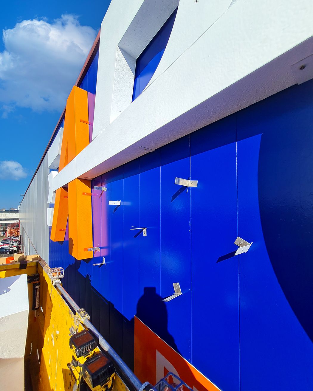 Ogni fase dell’intervento è stata studiata per integrarsi al meglio con la facciata dell’edificio, rispettando sia l’architettura esistente sia l’immagine coordinata del cliente.