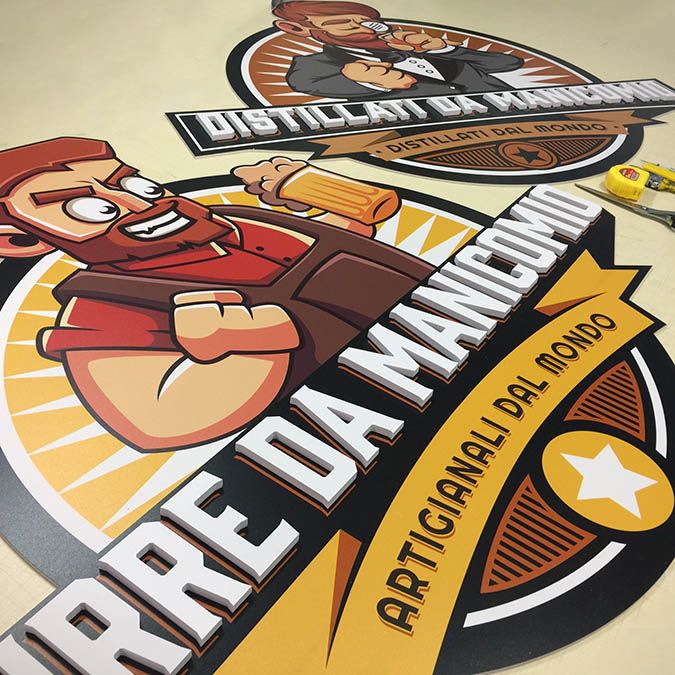Questa tipologia di insegna rappresenta una novità nell'immagine e nella comunicazione visiva. La tridimensionalità delle scritte inserite in una grafica curata nei dettagli, per trasmettere un messaggio commerciale, dona all'insegna una sua caratteristica tutta particolare.