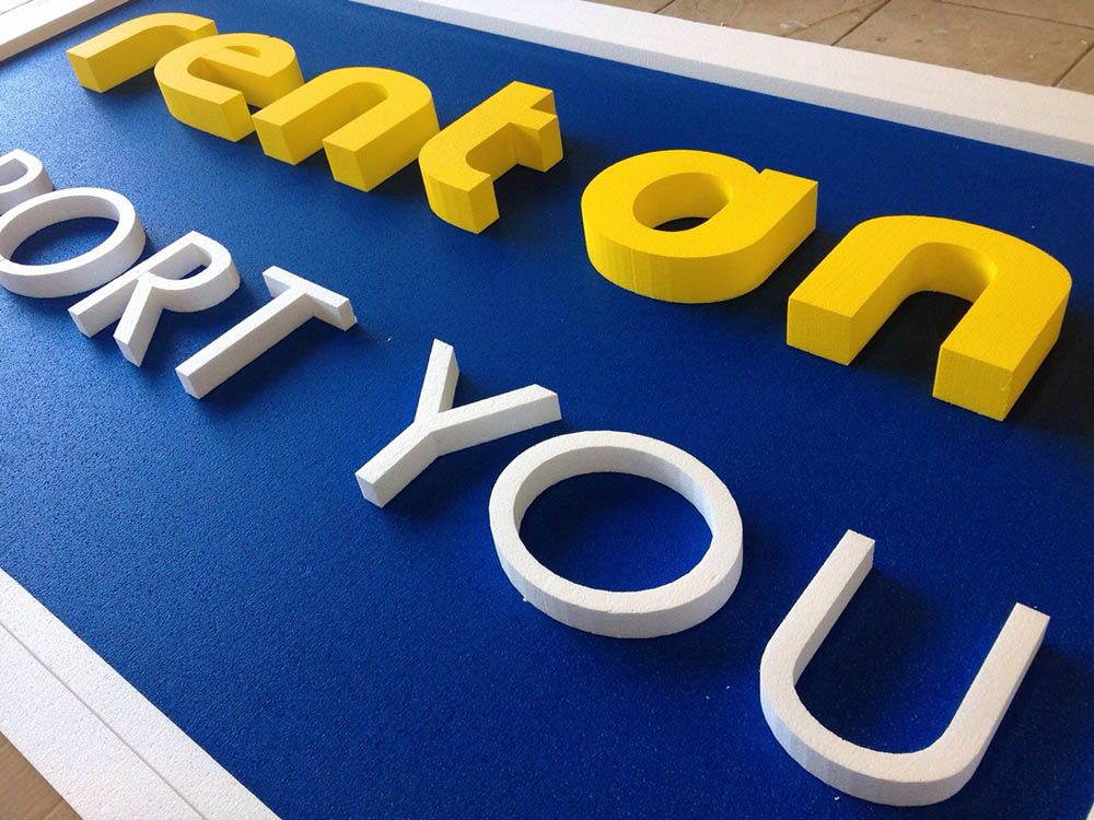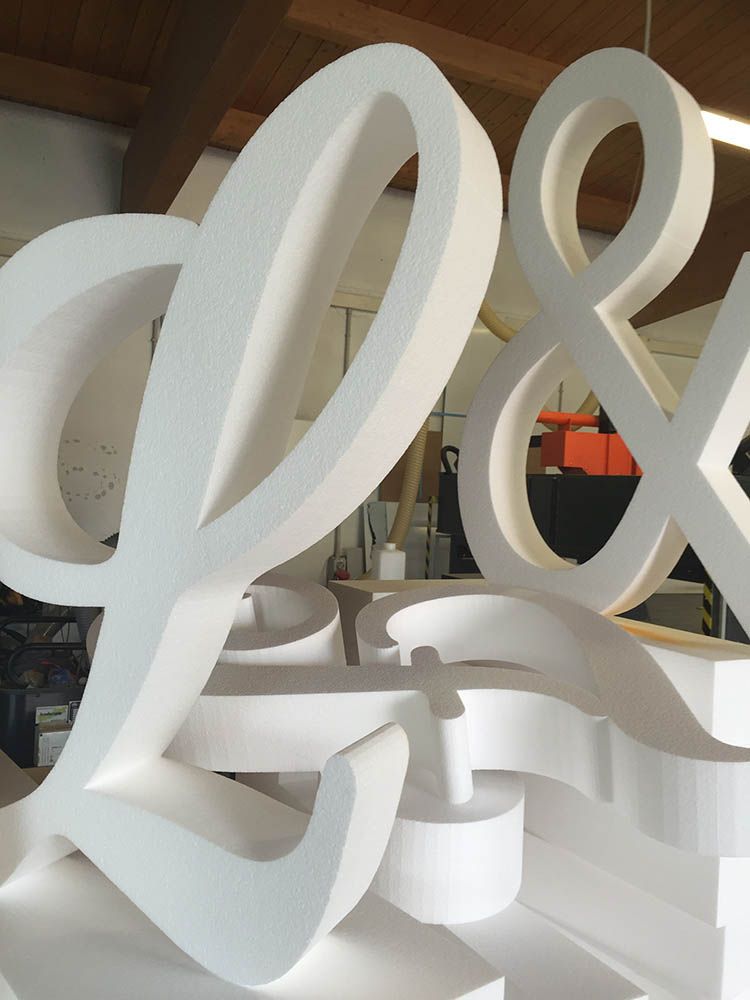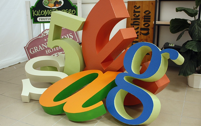 Grandi lettere o loghi in polistirolo da posizionare all'interno di esposizioni ed eventi, ottime per catturare l'attenzione dei visitatori e dare prestigio all'ambiente! Non ci sono limiti alle dimensioni raggiungibili e i costi sono contenuti grazie all'uso del nostro economico e leggero polistirolo.