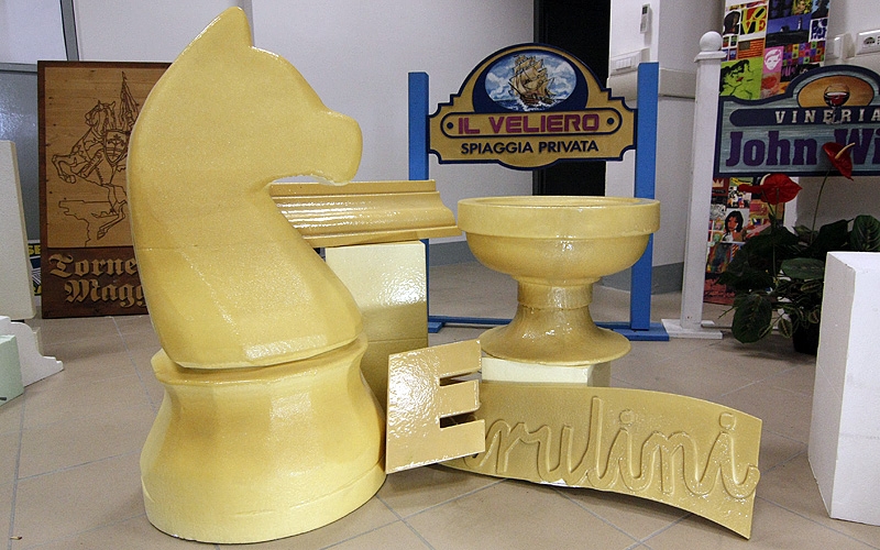 Le nostre Insegne sono realizzate in polistirolo e polistirene espanso e indurite con resine o cementi che le rendono resistenti alle peggiori intemperie dell'esterno