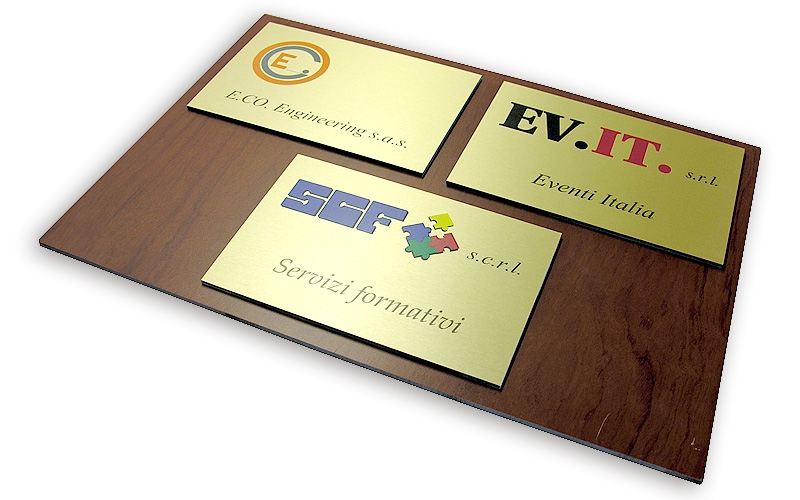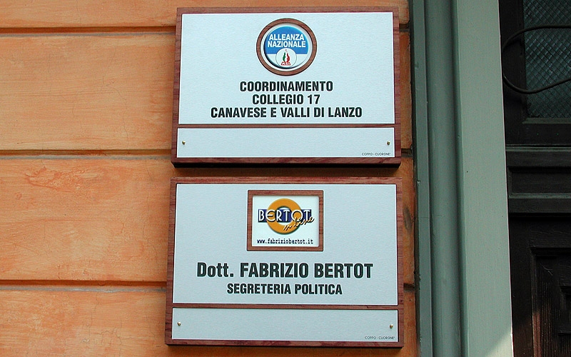 Targhe, applicazioni murali e installazioni utili a veicolare l'utente all'interno di pubbliche amministrazioni, banche, uffici pubblici e negozi.