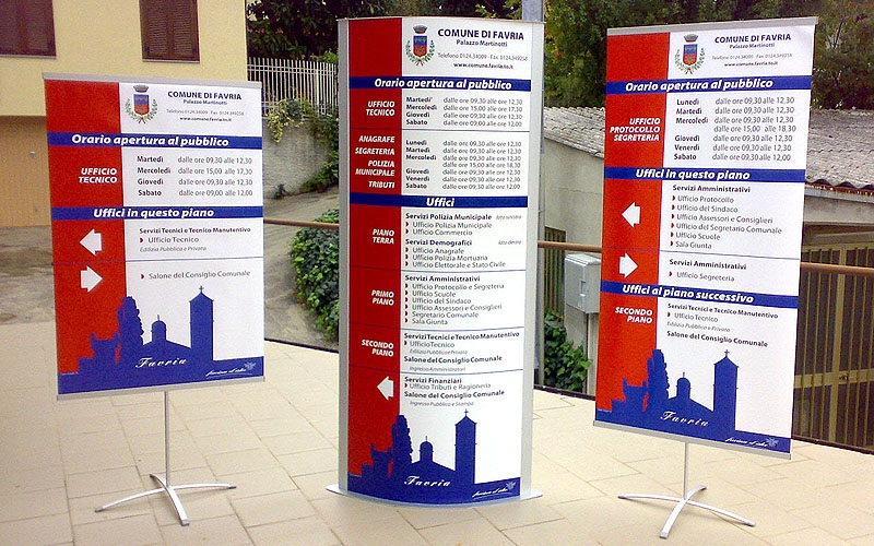 La Segnaletica Direzionale e Informativa per interni ed esterni. Modulare o personalizzata, dona un aspetto professionale e ordinato ai locali pubblici e uffici