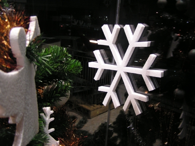 Addobbi in Polistirene espanso, leggeri e colorabili a piacimento, perfetti per essere appesi in vetrine, centri commerciali, saloni e padiglioni per feste.