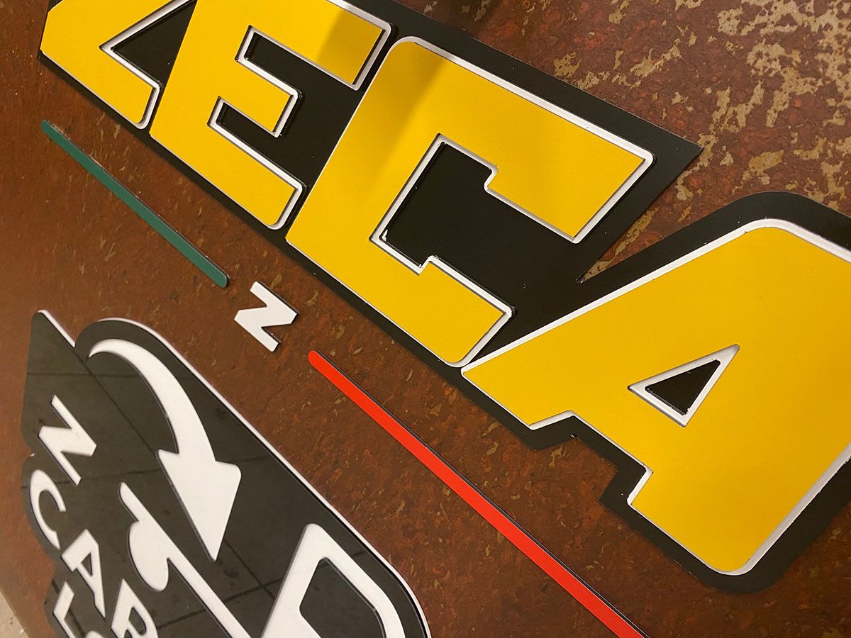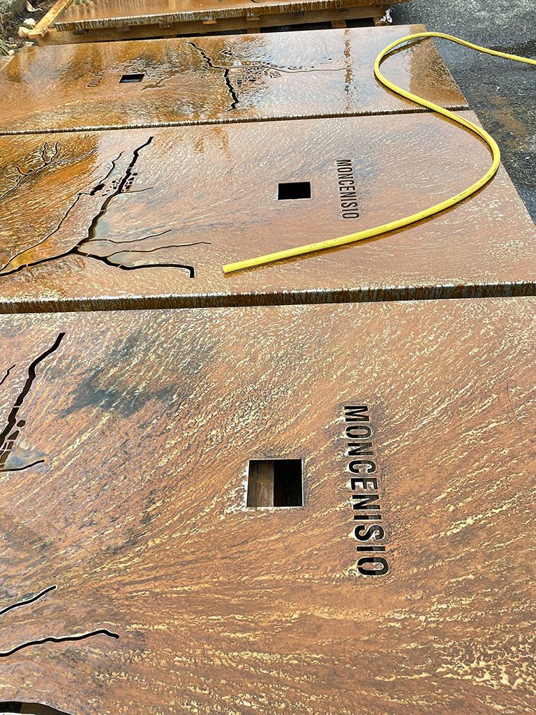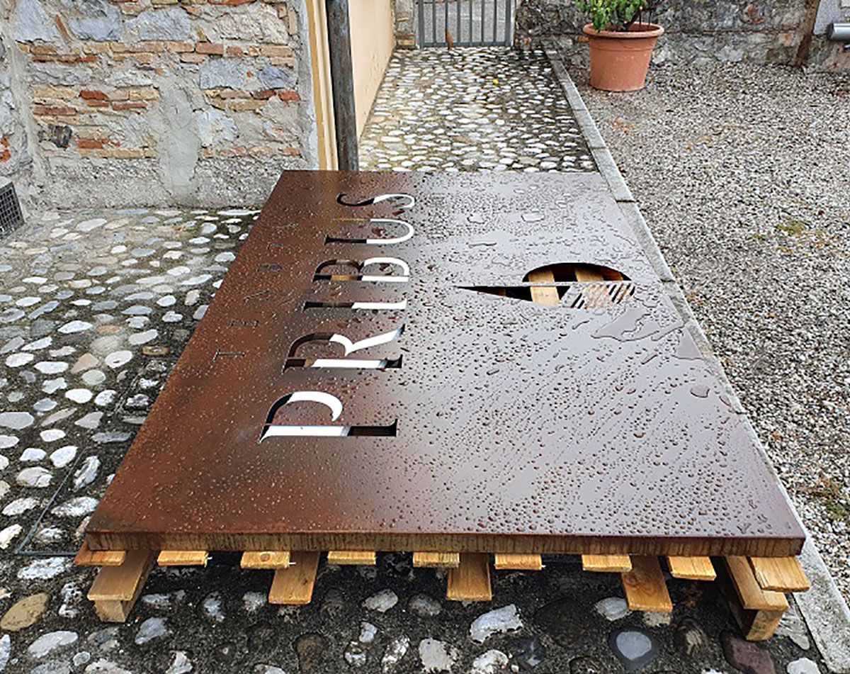 Grazie alle tecnologie di stampa diretta Canon®, possiamo inoltre stampare a colori sul CORTEN, ottenendo immagini e grafiche perfettamente integrate nella superficie metallica.