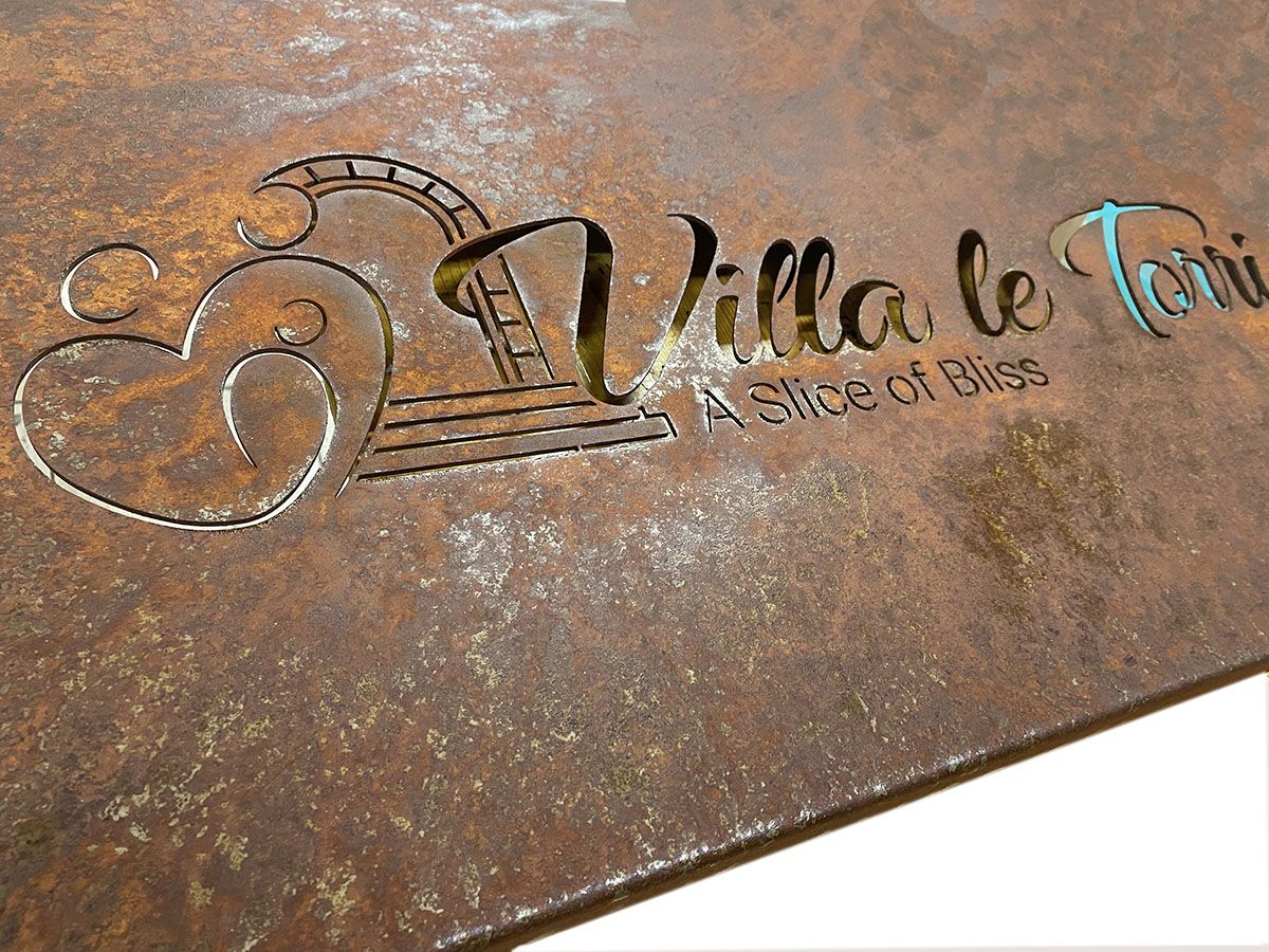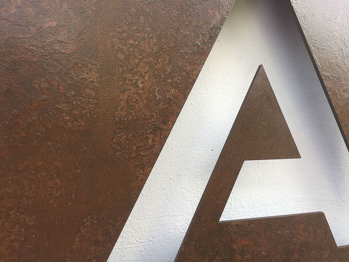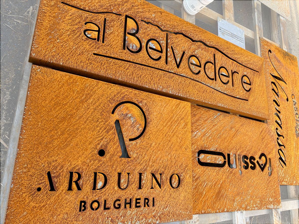 Realizziamo targhe e insegne in acciaio CORTEN, un materiale iconico della moderna architettura grazie al suo aspetto unico e alla straordinaria resistenza agli agenti atmosferici.