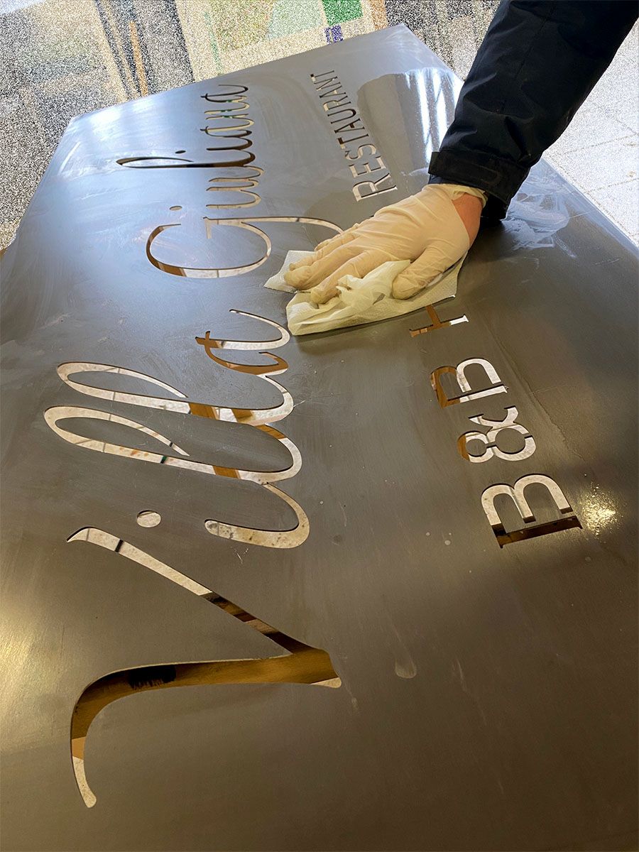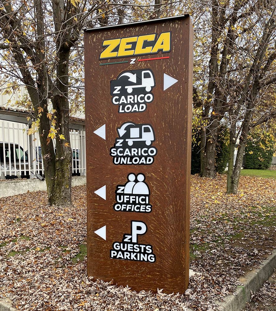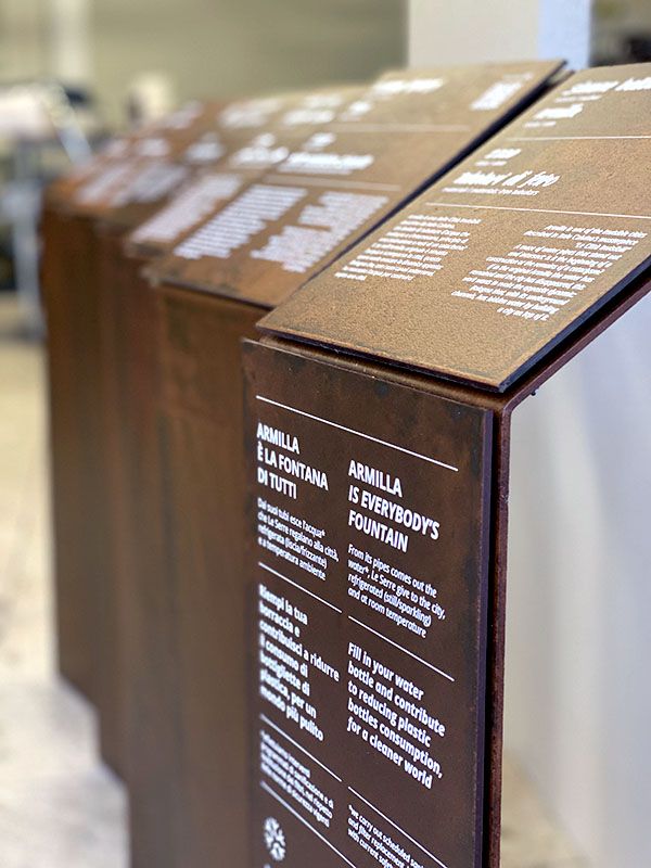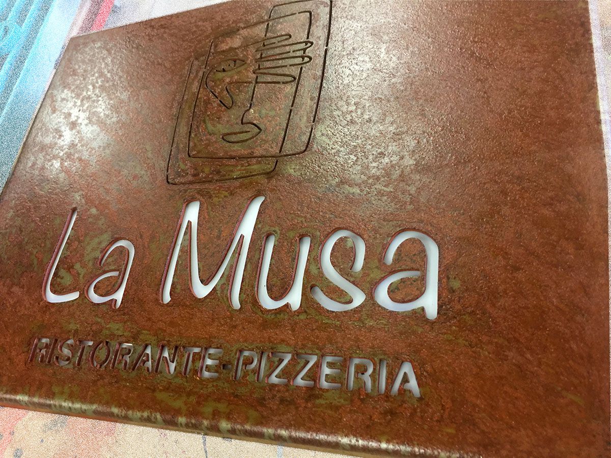 Realizziamo targhe e insegne in acciaio CORTEN, un materiale iconico della moderna architettura grazie al suo aspetto unico e alla straordinaria resistenza agli agenti atmosferici.